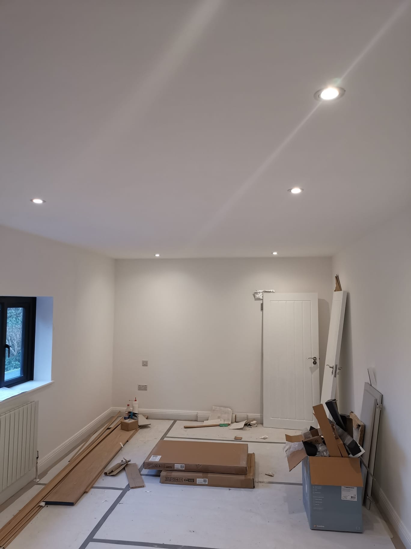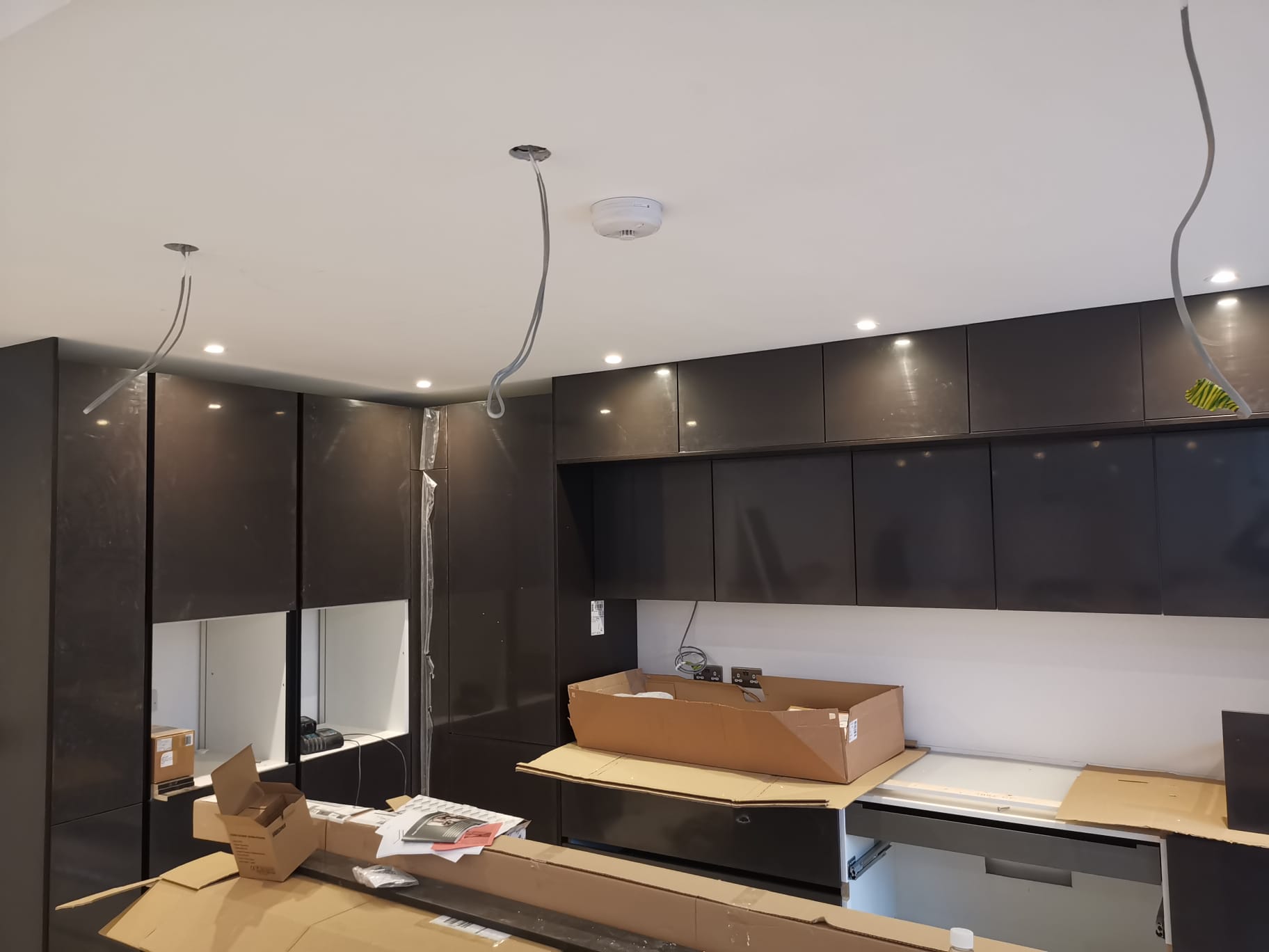 LED spotlight installation across ceilings